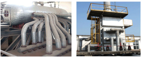 常用余热锅炉采用烟管换热,其金属受热面最低壁面温度与热流体排放温度之间大致处于一种倍数关系,即排烟温度为140℃时相应的最低壁温仅为70℃左右。对于烟管换热器,“如果金属受热面壁面温度要求不低于150℃时,其排烟温度通常不得低于300℃,否则必然引起低温结露腐蚀”。 复合相变环形热管换热技术,是一个全新的换热技术,它采用了热管的原理,提出了“相变段”这一概念,开创了以“壁面温度”作为换热器最基本的设计参数这一新理念。从根本上解决了低温腐蚀难题。 “相变段”的概念是将原来热管换热器中一根根相对独立的热管,构造成整体热管。保证“相变段”受热面最低壁面温度只有微小的梯度温降。同时,利用“相变段”将被加热介质(如空气、水)的温度适当地提高。在下一段被预热了的水可以保证上段热管的安全,解决了低温腐蚀问题,从而使最后的排烟温度无限接近露点而不腐蚀,实现了节能的目的。通过对“相变段”工质沸点温度调节,可以对受热面最低壁温面度实现闭环控制,轻松实现了壁面温度的恒定和调高调低的效果。 环形热管是把两根直径不同的管子以同一中心轴组合起来,两端用端盖封起,内外管壁之间抽成1.3×(10-1~10-4)Pa的负压后灌注一定量的相变工质,工作介质在常温下呈液态,热管外管受热后,导热介质被激活并极速汽化,由液态变为汽态,并以分子震荡相变形式、亚音速传递热量,到热管内层遇冷放热,“导热介质”放热后冷凝,由汽态变为液态,回到起始位置端继续吸热、蒸发;传递、放热;冷凝、回流,如此往复、高速循环,由于热管内为真空,流体阻力极小,而环形热管内外层间距只有10毫米,所以传热速度极快,大量热能通过其很小的横截面积远距离地传输而不需要外加任何动力。由于环形热管的独特结构,使其在热电工业、冶金工业、化工及石油化工、动力工程、纺织工业、玻璃工业、电子电器工程等领域内得到广泛的应用。 环形热管为双壁结构,分内管和外管,环形热管有以下几个优点: ◎吸热段在放热段内部,结构紧凑,可以承受较高压力。 ◎吸放热段中间距离最短,使介质蒸汽温度降到最低,相同工况下,使用寿命是普通重力热管的几十倍。 ◎可平立斜等任意角度摆放,给产品设计带来了最大方便。 ◎吸、放热段平行,启动即可传热,其传热速度比传统式重力热管提高数倍。 ◎启动温度可任意设定,当排烟温度低于露点温度时,系统不吸热,避免烟温降到露点以下,引起腐蚀。因此可使最后排烟温度无限接近露点,余热回收效率大幅提高。 |